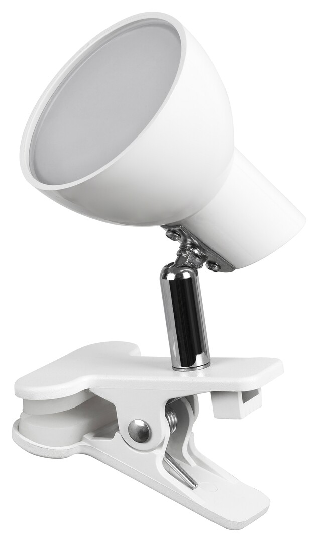 Die Noah Clip-On Lampe kann als praktische zusätzliche Lichtquelle im Wohnzimmer, Schlafzimmer oder Kinderzimmer verwendet werden. Ihr Hauptvorteil liegt in ihrer kompakten Größe und Mobilität: Sie können sie auf einem Tisch oder einem Regal montieren oder überall dort verwenden, wo Sie zusätzliche Beleuchtung benötigen. Die weiße Lampe aus Metall und Kunststoff ist 170 mm hoch, der Durchmesser des Lampenschirms beträgt 70 mm und der Clip der Lampe ist 100 mm lang. Diese funktionelle Lampe wird mit einem Schalter an einem Kabel verwendet und enthält ein eingebautes, energiesparendes LED-Leuchtmittel. Der Energieverbrauch des Leuchtmittels 5 W, seine Lichtstärke 360 Lumen, die Farbtemperatur 3.000 K und die Lebensdauer nicht weniger als 20.000 Stunden. Noah strahlt ein warmweißes Licht aus. Diese praktische Lampe kommt mit einer 5-Jahres-Garantie.