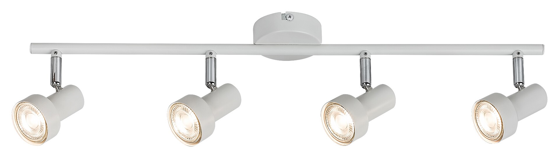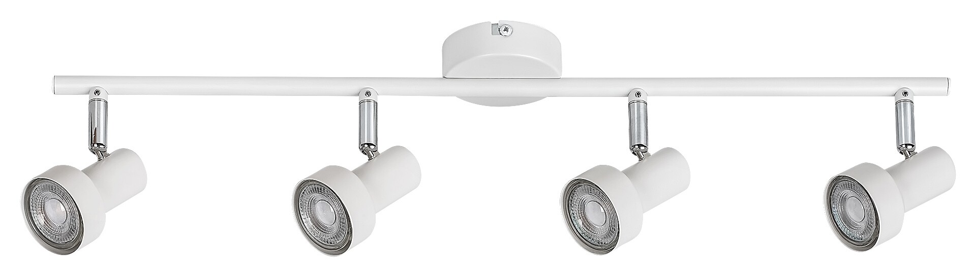 Die 4-flammige Spotlampe Konrad, die den Standardstil vertritt, kann ein frisches, angenehmes Einrichtungsstück des Wohnzimmers, Schlafzimmers oder Kinderzimmers sein. Es passt perfekt in fast jedes helle, durch Pastellfarben definierte Interieure. Das mattweiße Modell besteht vollständig aus Metall und kann mit Hilfe eines kleinen, runden Baldachins an der Decke befestigt werden. Die Abdeckungen sind zylindrisch und erweitern sich unten. Dank ihrer Größe eignet sich die 4-flammige Spotlampe auch hervorragend zur Beleuchtung eines geräumigeren Raums. Die Konrad kann mit vier Lichtquellen mit je einer Leistungsaufnahme von bis zu 50 W verwendet werden. Typ der Fassungen ist GU10. Wenn Sie eine intime, gemütliche Atmosphäre im Raum schaffen möchten, wählen Sie warmweiße Lichtquellen für die Lampe. Die Breite der 4-flammigen Spotleuchte Konrad ist 605 mm, Abstand von der Decke ist 120 mm. Dieses Modell wird ohne Lichtquellen geliefert.