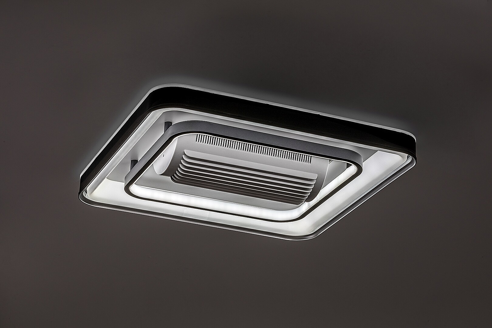 Die Rabalux Aireon Deckenventilatorlampe wird für diejenigen empfohlen, die beim Auswählen einer Lampe auf umfangreiche Funktionen setzen. Dieses Modell verfügt über eine eingebaute LED-Lichtquelle, die für energieeffizienten Betrieb und eine lange Lebensdauer sorgt. Zu den vielen intelligenten Funktionen gehören die Anpassung der Farbtemperatur per Fernbedienung oder Wandschalter, Dimmen, Speicher- und Timerfunktionen per Fernbedienung sowie eine Nachlichtfunktion. Zudem können die smarten Funktionen über Wi-Fi gesteuert werden. Die Deckenlampe ist aus Metall mit quadratischer Form, abgerundeten Ecken, einer schwarzen Halterung und einem weißen Acrylschirm gefertigt. Die Ventilatorgeschwindigkeit ist einstellbar, und die Leistung reicht für Räume von bis zu 12 m² aus. Dieses Modell ist die perfekte Wahl für das Wohnzimmer, Schlafzimmer oder Arbeitszimmer.