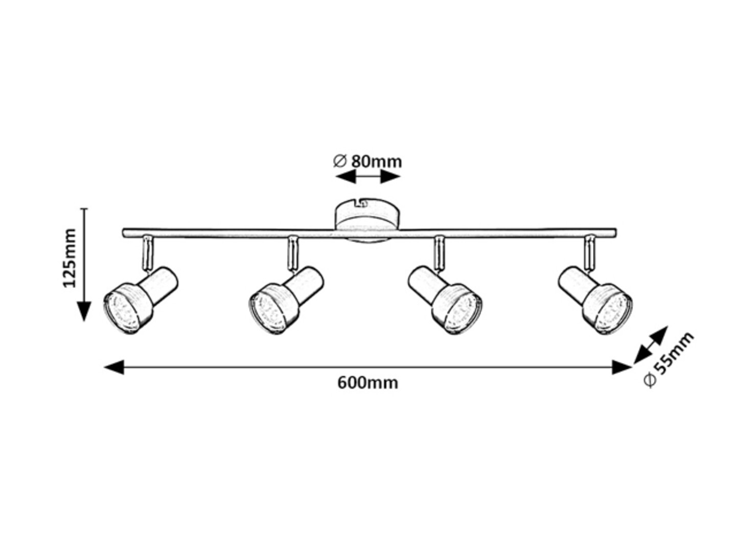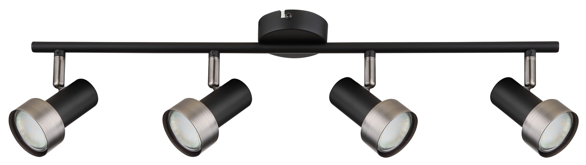 Die 4-flammige Spot-Deckenleuchte Konrad, die den Industriestil vertritt, wird in erster Linie ins Wohn- oder Schlafzimmer empfohlen. Das mattschwarze Modell, das völlig aus Metall gefertigt wird, ist durch silberfarbene Abdeckungen ergänzt, und kann mithilfe eines kleinen runden Baldachins an der Decke befestigt werden. Auf der langen, zum Baldachin befestigten Stange befinden sich die flexiblen Lampenköpfe nebeneinander nach der Reihe. Dank diesen kann das Licht der Lampe nach Belieben gesteuert werden. Die Konrad kann mit vier Lichtquellen mit je einer Leistungsaufnahme von bis zu 50 W verwendet werden. Typ der Fassungen ist GU10. Wenn Sie diese Deckenleuchte im Schlafzimmer benutzen möchten, ist es empfohlen, sie mit Lichtquellen zu bedienen, die warmweißes Licht abstrahlen und die Schaffung einer intimen, gemütlichen Atmosphäre fördern. Die Abmessungen der 4-flammigen Spotleuchte Konrad sind wie folgt: Breite 600 mm, Höhe 120 mm, Durchmesser der Abdeckungen 55 mm, Lampenabstand von der Decke 125 mm, Installationsdurchmesser 80 mm. Dieses Modell wird ohne Lichtquellen geliefert.