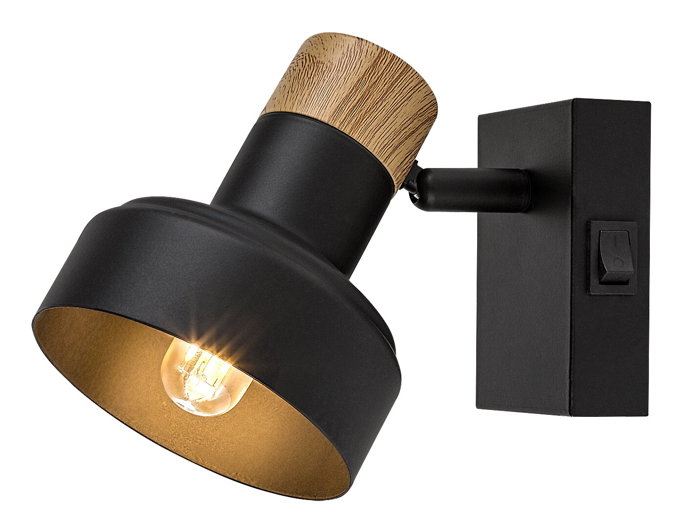 Die Wandleuchte Saskia von Rábalux wird vor allem Liebhabern des nordischen Stils empfohlen. Dieses wandmontierte Modell besteht aus Metall und Holz in den Farben Schwarz und Eiche. Der elegante dunkle Ton der Halterung und der dekorativen Basis wird nur durch die Eichenkappe unterbrochen, die dem Design der Lampe eine natürliche Note verleiht. Die Innenseite des Lampenschirms ist goldfarben, was gut mit dem natürlichen Holzton harmoniert. Der Spot ist an einer rechteckigen, aufrecht stehenden dekorativen Basis mit einem Kippschalter an der Seite befestigt. Der praktische Lampenkopf ist drehbar, sodass das Licht stets nach Bedarf ausgerichtet werden kann. Dieses Modell ist die ideale Wahl für das Wohnzimmer, Schlafzimmer oder Arbeitszimmer. Es kann mit einem Leuchtmittel mit einer Leistung von bis zu 15 W betrieben werden. Der Sockeltyp ist E14. Die Spotleuchte wird ohne Leuchtmittel geliefert.