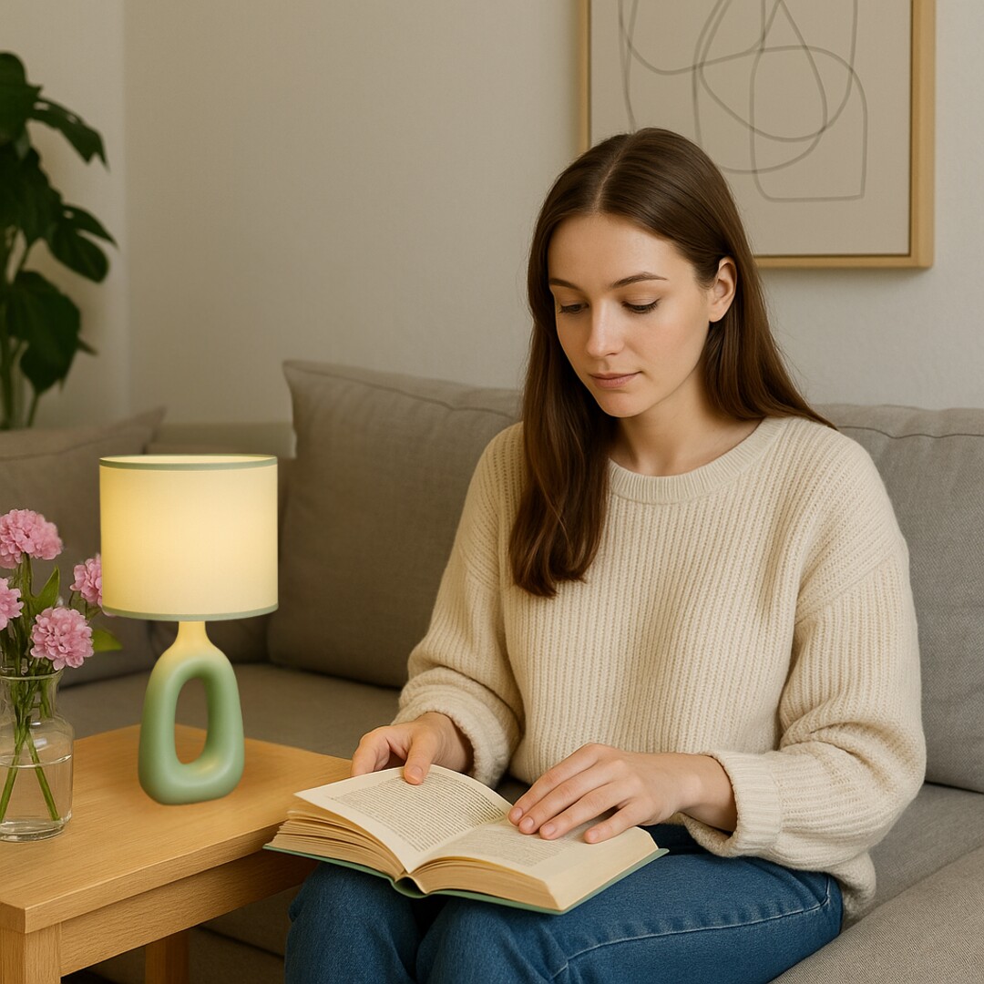 Die Rabalux Sylira-Tischleuchte wird all jenen empfohlen, die eine einzigartige, farbenfrohe Ergänzungsleuchte für das Wohn- oder Schlafzimmer suchen. Die moderne Nachtleuchte zeichnet sich durch ein Gehäuse mit einer Öffnung in der Mitte aus, das aus grüner Keramik gefertigt ist. Der Lampenschirm ist zylindrisch, oben und unten offen und besteht aus grünem Textil. Die Tischleuchte kann mit einem einzelnen Leuchtmittel mit einer Leistung von bis zu 40 W betrieben werden. Sockeltyp ist E14. Je nach Geschmack kann ein Leuchtmittel mit warmweißem oder neutralweißem Licht gewählt werden. Wird die Lampe im Schlafzimmer verwendet, empfiehlt sich ein Leuchtmittel mit warmweißem Licht, um eine entspannte Atmosphäre zu fördern. Sie kann auf dem Nachttisch oder auf einem beliebigen Tisch platziert werden. Die Nachtleuchte wird über einen Kabelschalter bedient und ohne Leuchtmittel geliefert.