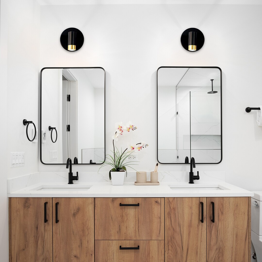 Die Wandleuchte Kadir von Rábalux ist die ideale Wahl für all jene, die ein Modell suchen, das sauberes Design mit Eleganz vereint. Diese LED-Lampe ist im Geist des Industriestils in Schwarz und Gold gestaltet, mit einer zylindrischen Halterung und einem transparenten Plastik-Lampenschirm. Der dekorative Sockel hat eine runde Form in Schwarz und einen Durchmesser, der die Gesamthöhe des Lampenkopfes übersteigt, was einen eleganten Hintergrund schafft. Die Wandleuchte ist mit einem Schalter ausgestattet und verfügt über eine eingebaute LED-Lichtquelle, die ein neutralweißes Licht abstrahlt. Da dieses Modell gegen das Eindringen von festen Partikeln mit einem Durchmesser von 1 mm oder mehr sowie gegen Spritzwasser aus jeder Richtung geschützt ist, können Sie es nicht nur im Wohnzimmer, sondern auch im Badezimmer bedenkenlos installieren. Dank der integrierten LED-Technologie zeichnet sich die Lampe durch energieeffizienten Betrieb und eine lange Lebensdauer aus.