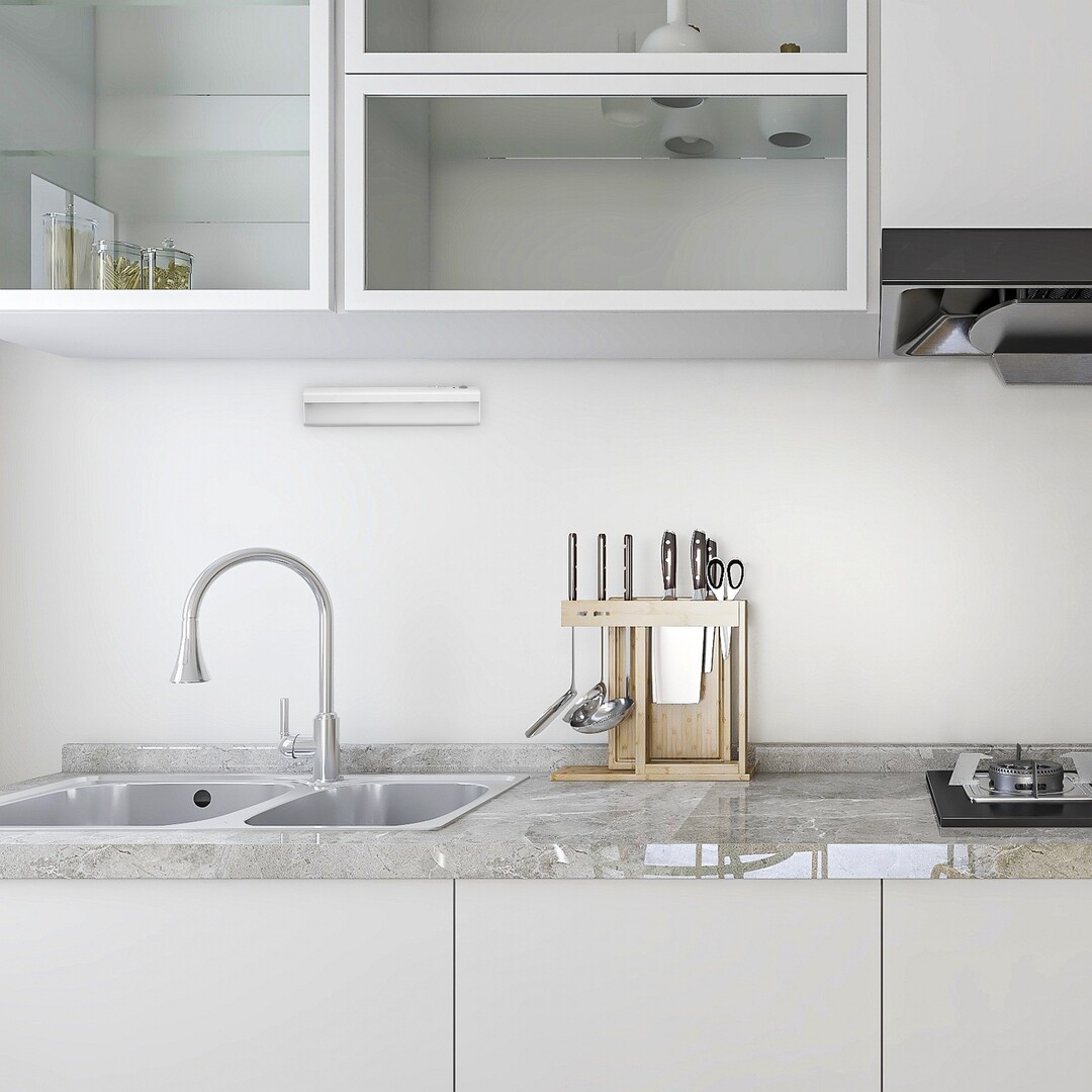 Die Schrankleuchte Jelora mit Bewegungssensor von Rábalux wird all jenen empfohlen, die sowohl praktische Funktionen als auch Platzersparnis schätzen. Jeder ist sich einig, dass eine gute Beleuchtung für die Küchenarbeit unerlässlich ist. Um dies auch in Bereichen zu gewährleisten, die von Küchenmöbeln beschattet werden, ist eine gute Schrankleuchte notwendig. Das an der Wand montierte Küchenmodell besteht aus Kunststoff im funktionalen Stil in mattem Weiß. Es verfügt über eine eingebaute LED-Lichtquelle, die ein neutralweißes Licht abstrahlt. Die Lampe kann mit drei AA-Batterien betrieben werden – Batterien sind nicht im Lieferumfang enthalten. Die Sensorlösung macht die Lampe besonders praktisch in der Anwendung, während die LED-Technologie eine lange Lebensdauer gewährleistet.