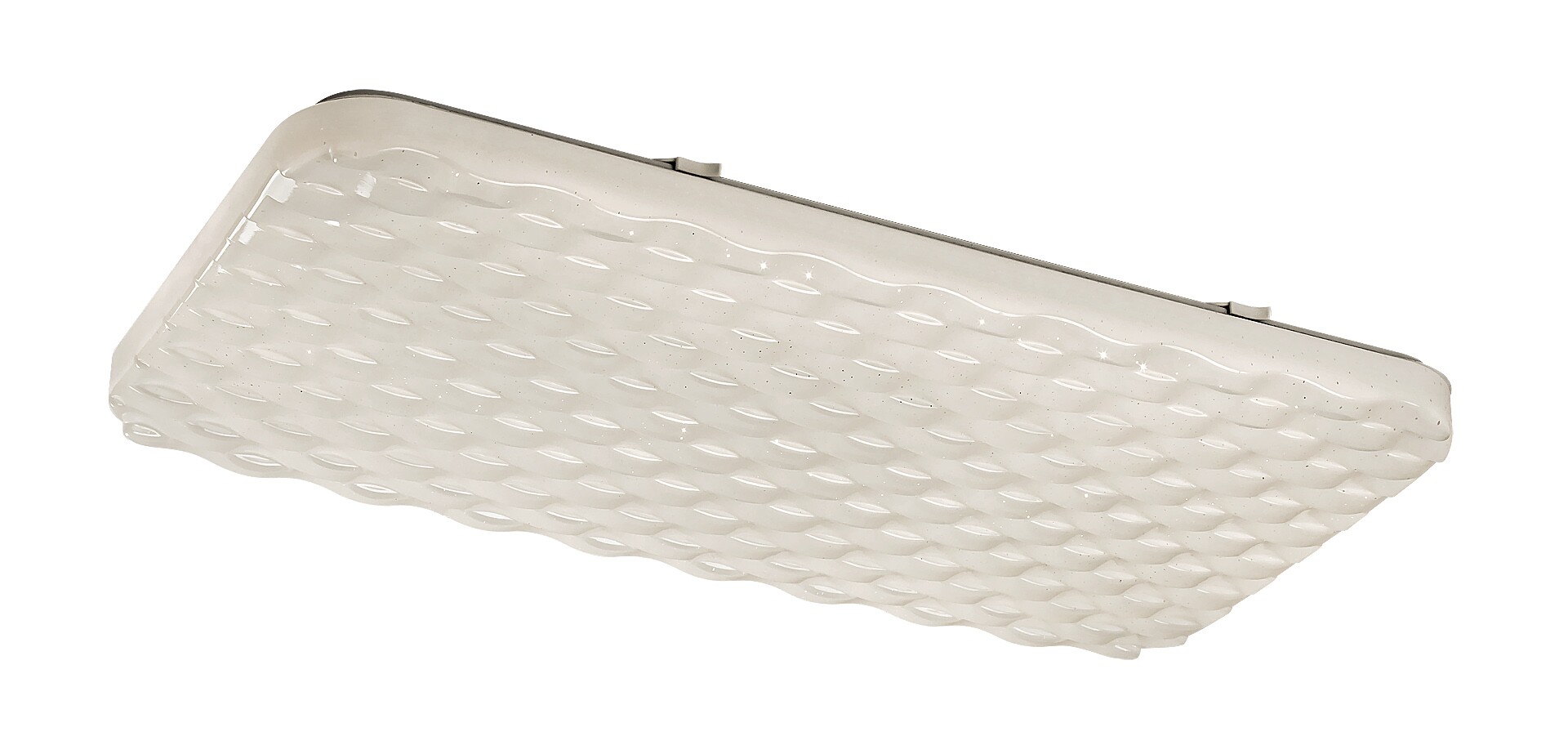 Die moderne Deckenleuchte Eldrick, die mit einem Glitzereffekt versehen wurde, wird eine tolle Wahl in Ihr Wohnzimmer, Schlafzimmer oder Arbeitszimmer sein. Dieses weiße Modell, das völlig aus Kunststoff gefertigt wurde, passt sich fast unmerklich an die Fläche der Decke an. Die quadratische Lampe, die mit gerundeten Ecken gefertigt wurde, hat eine eingebaute LED-Lichtquelle mit einer Leistungsaufnahme von 36 W, einem Lichtstrom von 2.800 Lumen und einer außerordentlichen Lebensdauer von 50 000 Stunden! Die Eldrick leuchtet mit neutralweißem Licht, die Farbtemperatur der Lichtquelle ist 4.000 K. Die Abmessungen dieser Deckenleuchte sind 635x330 mm, Abstand von der Decke beträgt nur 50 mm. Wir gewähren 5 Jahre Garantie auf dieses Modell.
