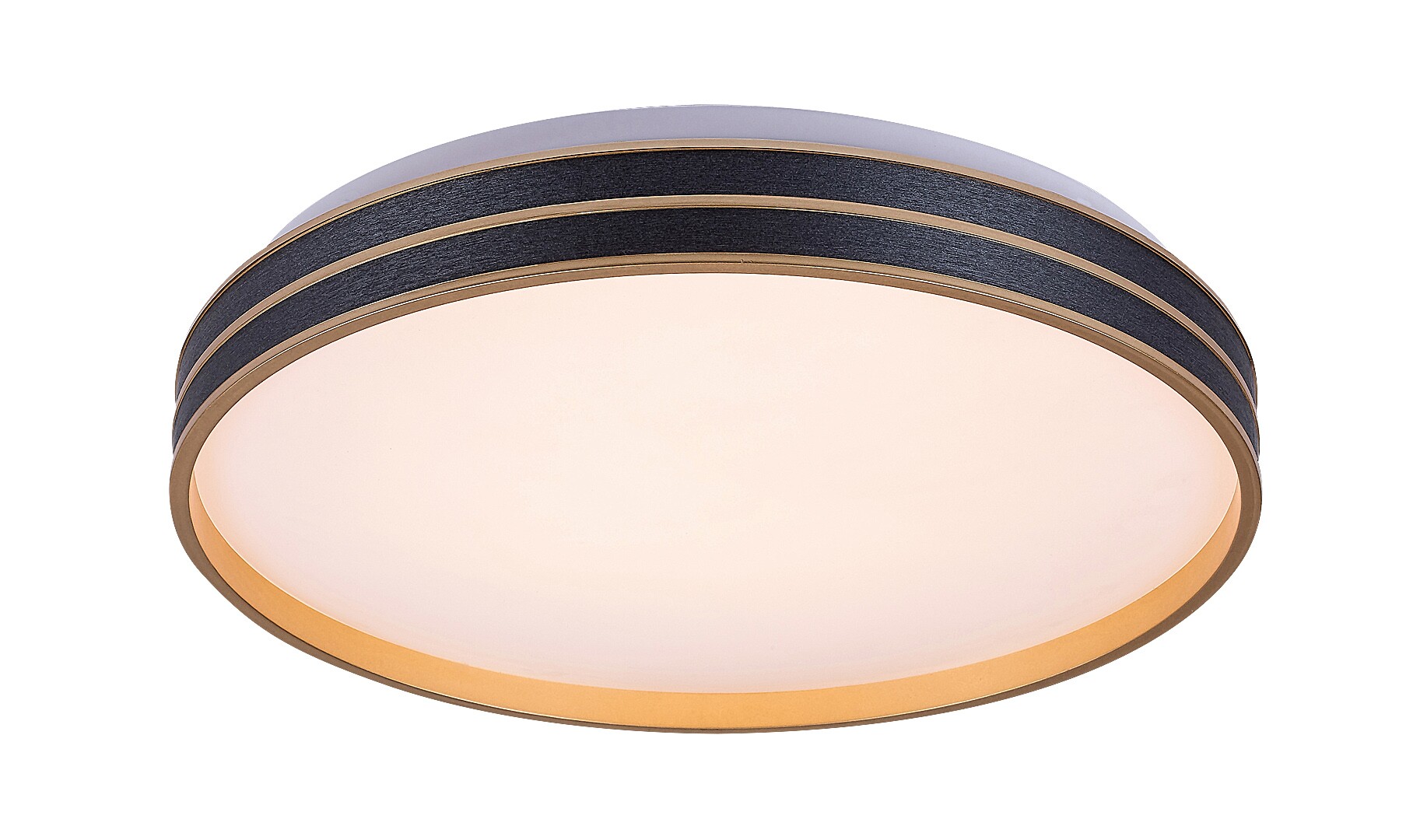 Mit ihrer Farbkombination aus Schwarz und Gold und ihrer Vielseitigkeit kann die runde Deckenleuchte Gandor ein praktisches und elegantes Element Ihrer modernen Wohnzimmereinrichtung sein. Dieses Model aus Metall, dessen schwarze Grundfarbe durch schmale goldfarbene Streifen unterbrochen wird, wird durch einen weißen Kunststoffschirm ergänzt. Die Gandor verfügt über ein eingebautes LED-Modul der Energieklasse G mit einer Leistung von 24 W, einem Lichtstrom von 1.850 Lumen mit Schirm und 2.400 Lumen ohne Schirm, sowie einer Lebensdauer von 25.000 Stunden. Die Farbtemperatur der Deckenleuchte kann mit einem Schalter oder einer Fernbedienung zwischen 3.000 und 6.500 K eingestellt werden, d. h. sie ist in der Lage, warm-, natürlich- oder kaltweißes Licht abzustrahlen. Darüber hinaus ist die Leuchte mit Hilfe einer Fernbedienung dimmbar, das heißt, ihre Helligkeit kann nach Bedarf geändert werden. Die Gandor verfügt auch über eine Speicherfunktion, die mit einer Fernbedienung oder einem Schalter gesteuert werden kann, eine Timer-Funktion, die mit einer Fernbedienung eingestellt werden kann, und eine Nachtlicht-Funktion. Der Durchmesser dieser Deckenleuchte beträgt 390 mm, der Abstand von der Decke beträgt 75 mm.