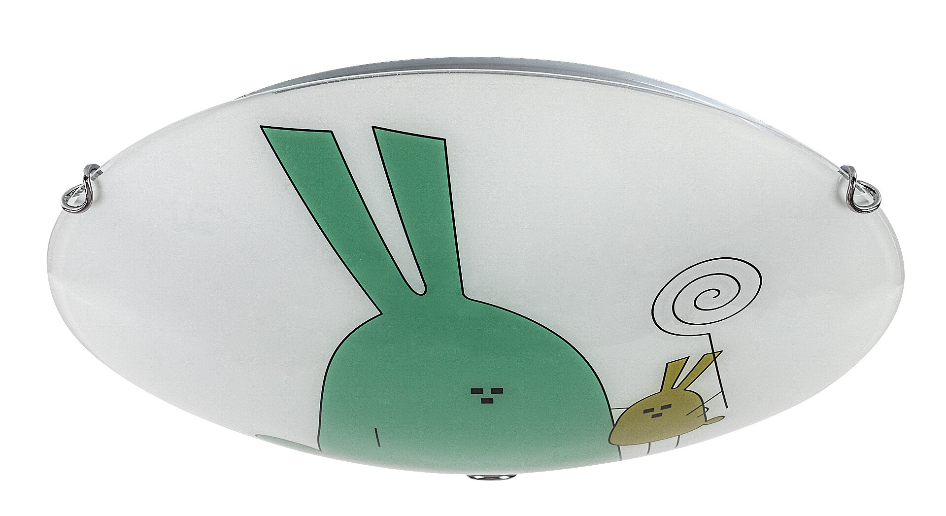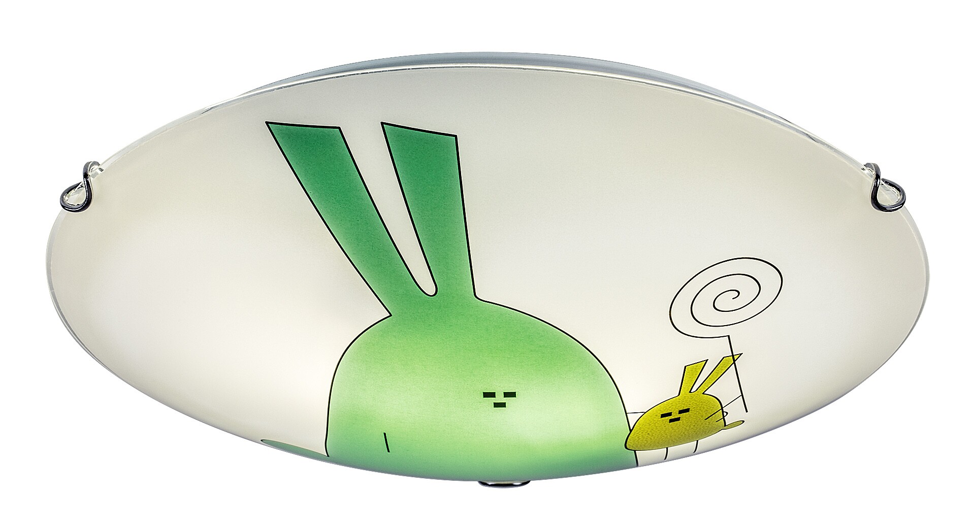 Die Rabalux Flappy Kinder-Deckenleuchte ist ein von Rabalux selbst entworfenes Modell. Sie ist ideal für alle, die das Kinderzimmer mit niedlichen, herzerwärmenden Motiven noch gemütlicher gestalten möchten. Die Lampe ist in Weiß gehalten, verfügt über eine runde Metallhalterung und einen Glasschirm. Der Lampenschirm ist mit einem charmanten, stilisierten Hasenmotiv verziert, dem man einfach nicht widerstehen kann. Die dominierenden Farben des Musters sind frische, fröhliche Grüntöne.Die Kinderzimmerlampe kann mit zwei Leuchtmitteln mit einer Leistung von jeweils bis zu 60 W verwendet werden. Der Lampensockel ist E27. Für eine besonders gemütliche und einladende Atmosphäre empfiehlt sich die Verwendung von Lichtquellen mit warmweißem Licht.Diese Kinder-Deckenleuchte wird ohne Leuchtmittel geliefert.