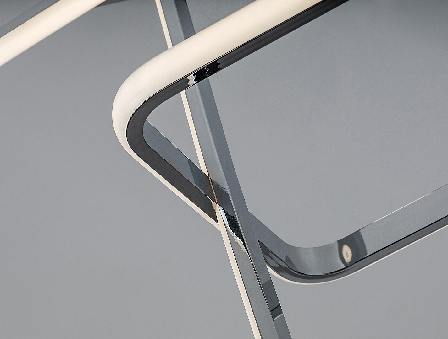 Die Rabalux Malwen Deckenleuchte wird all jenen empfohlen, die mutige, außergewöhnlich gestaltete Modelle bevorzugen. Diese Lampe besteht aus einem chromfarbenen Metallgehäuse und einem weißen Aluminium-Lampenschirm und wird mit einer quadratischen, chromfarbenen Dekobasis an der Decke befestigt. Das Herzstück der Leuchte bilden zwei unterschiedlich große, ineinandergreifende Elemente, deren quadratische Form durch abgerundete Ecken weicher wirkt. Dieses Modell verfügt über eine integrierte LED-Lichtquelle, die ein neutralweißes Licht abstrahlt. Die Deckenlampe zeichnet sich durch eine hohe Lichtstärke aus und eignet sich daher ideal für größere Räume. Ihr Design ermöglicht es, dass das Licht in alle Richtungen frei strahlt. Sie ist perfekt für moderne Wohnzimmer, Küchen, Esszimmer oder Schlafzimmer. Dank der LED-Technologie überzeugt sie durch energieeffizienten Betrieb und eine lange Lebensdauer.