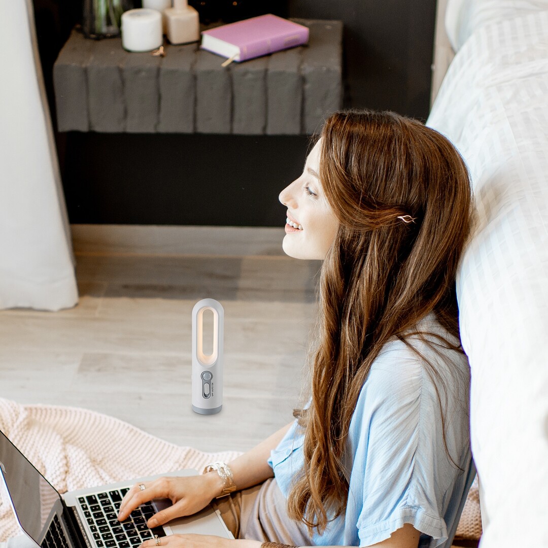 Die Rábalux Radko Sensor-Dekorlampe ist die ideale Wahl für alle, die eine vielseitige Lampe mit besonders langer Lebensdauer suchen. Das Modell ist zylindrisch geformt, vollständig aus Kunststoff gefertigt und in Weiß gehalten. Der Lampenschirm verläuft an der Innenseite des hohlen Lampenkörpers und strahlt dort sein Licht aus. Das smarte Modell mit Bewegungssensor verfügt über eine integrierte LED-Lichtquelle mit einstellbarer Farbtemperatur. Der integrierte Akku benötigt 2 Stunden zum Laden und bietet eine Laufzeit von 3 Stunden. Ein zum Laden benötigtes USB-Kabel ist nicht im Lieferumfang enthalten. Der Lampenfuß dient zugleich als Taschenlampe. Die Dekorlampe ist ideal für moderne Wohnzimmer, Schlafzimmer oder Arbeitszimmer. Dank der LED-Technologie überzeugt sie durch eine besonders lange Lebensdauer.