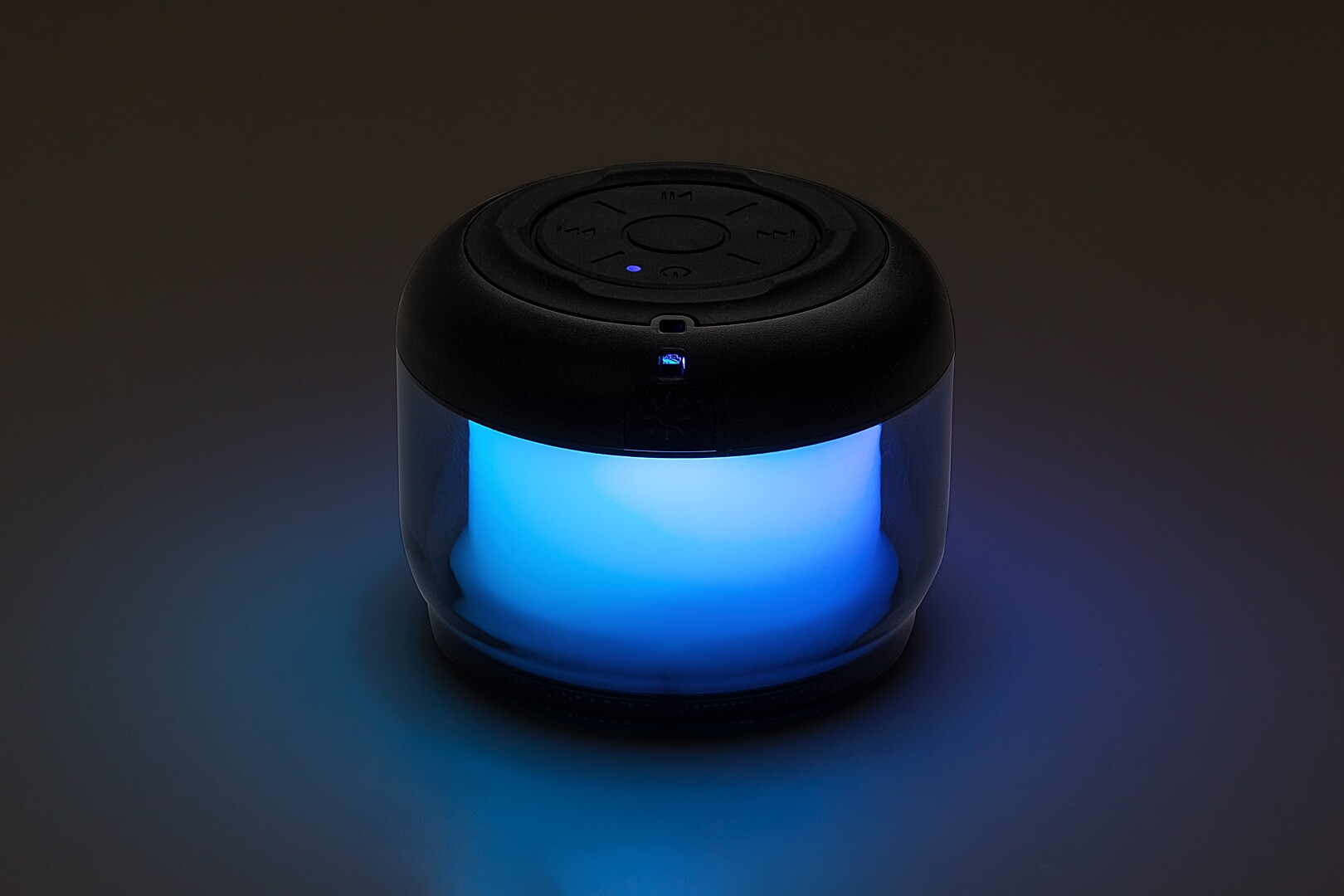 Die LED-Tischlampe Radelia von Rábalux wird all jenen empfohlen, die nach einer vielseitigen Ergänzungsleuchte suchen, die leicht zu bewegen ist. Dieses kleine Modell verfügt über einen Bluetooth-Lautsprecher und ist in der Lage, RGB-Beleuchtung zu erzeugen – perfekt, um eine gemütliche Atmosphäre vor dem Schlafengehen zu schaffen. Der Widerstand des Lautsprechers beträgt 3 Ω, die Leistung: 5 W. Sie ist die ideale Wahl für das Kinderzimmer, Schlafzimmer oder Wohnzimmer. Sie besteht aus Kunststoff mit einer zylindrischen schwarzen Halterung und einem transparenten Lampenschirm und wird mit einem AUX-Kabel geliefert. Die Designlampe enthält eine eingebaute LED-Lichtquelle und eine Batterie. Letztere kann in 1-2 Stunden aufgeladen werden und hält bei voller Ladung 3-4 Stunden. Ihre Größe und die Batterielösung machen dieses Modell jederzeit leicht zu bewegen, während es nicht nur auf einem Tisch oder Nachttisch, sondern auch auf einem kleinen Regal bequem Platz findet.