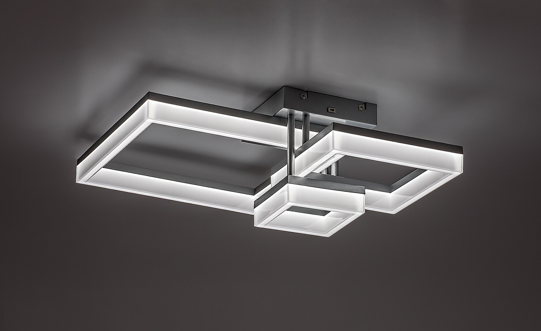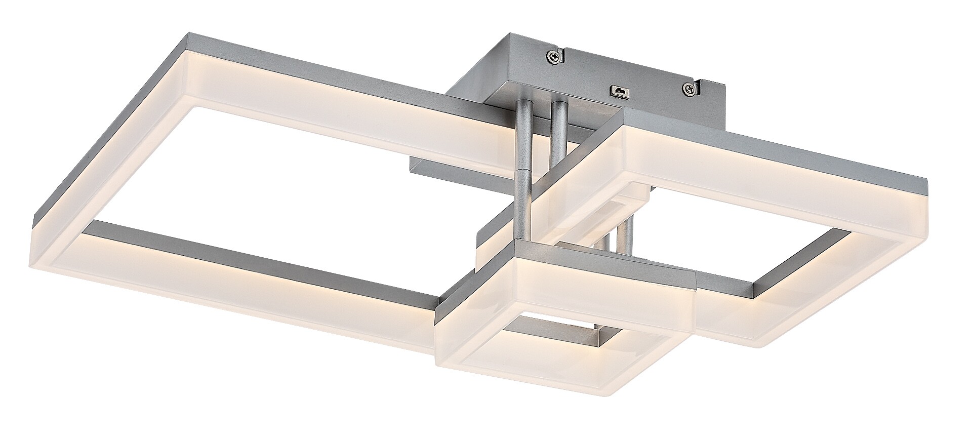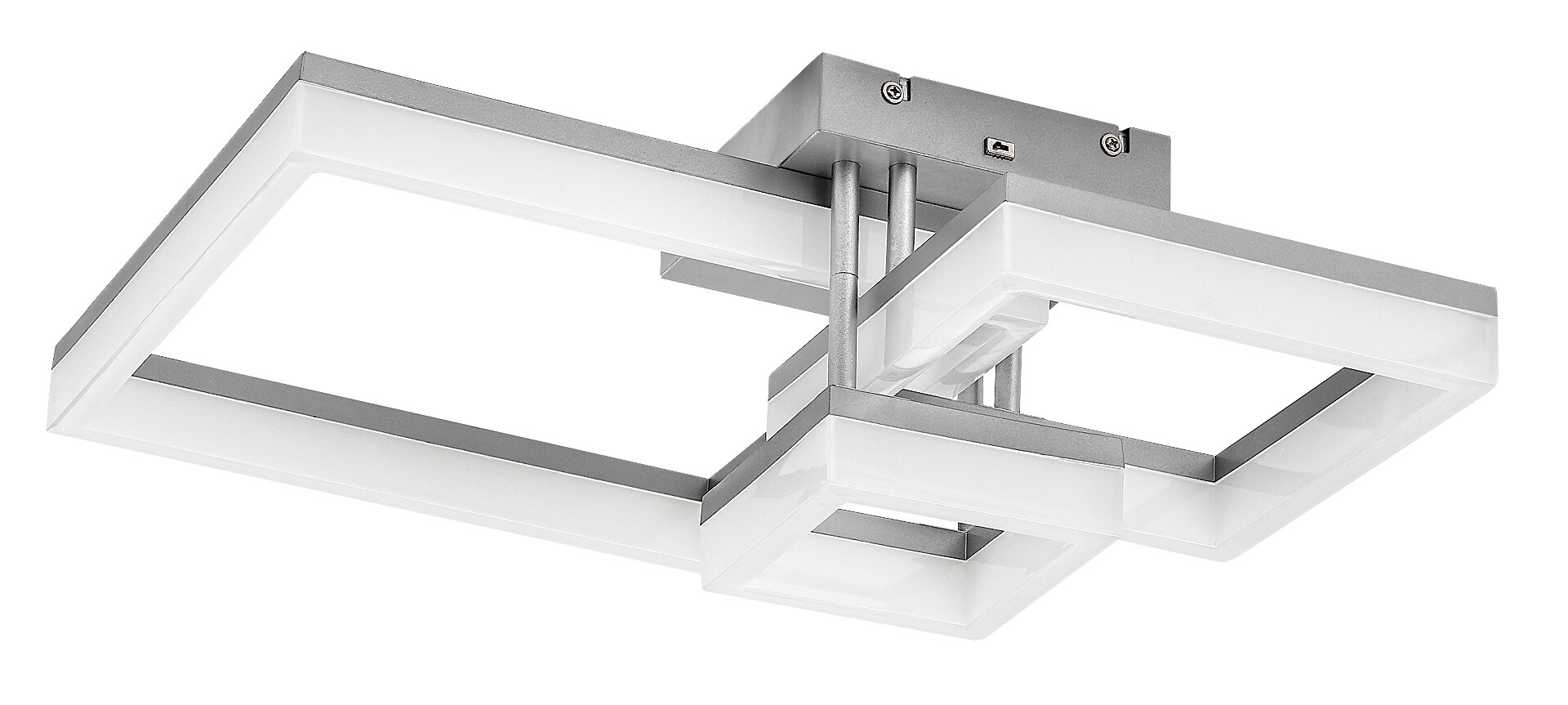 Die Rabalux Amilia Deckenleuchte wird all jenen empfohlen, die kreatives Design ebenso wichtig finden wie smarte Funktionen. Diese LED-Leuchte präsentiert sich im modernen Stil mit einem chromfarbenen Metallgehäuse und einem weißen Kunststoff-Lampenschirm. Das beeindruckende Modell besteht aus drei quadratischen Elementen unterschiedlicher Größe und wird mit einer quadratischen, chromfarbenen Dekobasis an der Decke befestigt. Die Leuchte verfügt über eine integrierte LED-Lichtquelle mit drei Farbtemperatureinstellungen, die über einen DIP-Schalter reguliert werden können. Dank ihrer hohen Lichtstärke eignet sich diese Deckenlampe perfekt für größere Räume. Sie ist die ideale Wahl für das Wohnzimmer, Esszimmer oder Schlafzimmer. Aufgrund der integrierten LED-Technologie zeichnet sich dieses Modell durch energieeffizienten Betrieb und eine lange Lebensdauer aus.