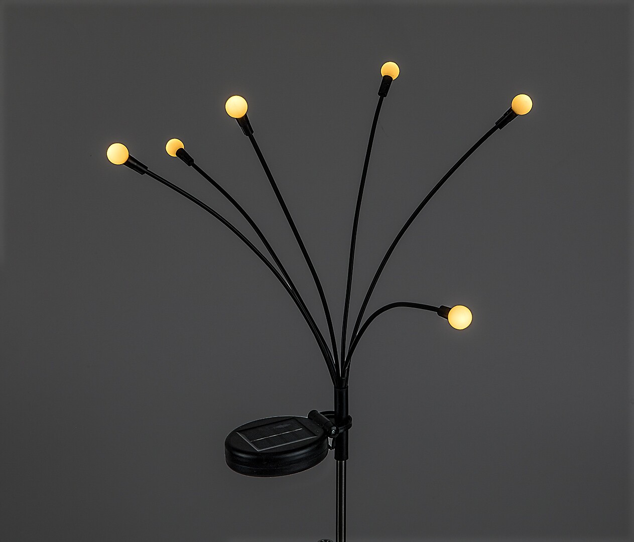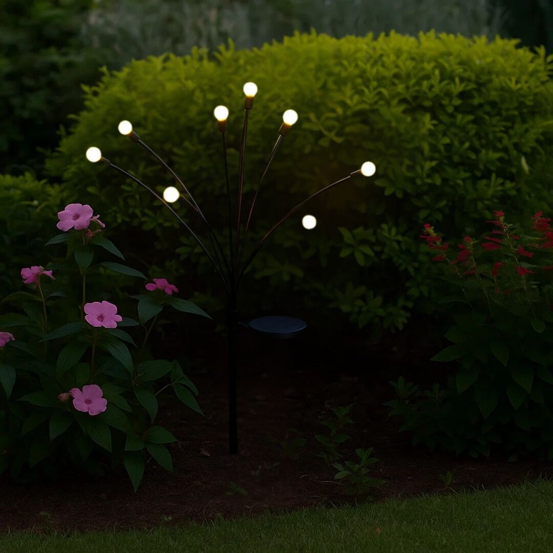 Die Rábalux Tavira Solar-Gartenleuchte zum Einstecken überzeugt mit einem modernen Design aus schwarzem Kunststoffgehäuse und weißen Schirmen, die auf sechs elegant geschwungenen Armen sitzen – so entsteht ein luftiges, dekoratives Lichtspiel im Garten. Die Leuchte ist mit einem integrierten LED ausgestattet. Das Solarpanel auf der Oberseite lädt sich tagsüber auf, bei Dunkelheit schaltet sich das Licht dank Dämmerungssensor automatisch ein, kann bei Bedarf aber auch manuell per Schalter gesteuert werden. Ideal als stimmungsvolle Beleuchtung entlang von Blumenbeeten, Rasenflächen, Gehwegen oder im Vorgarten sowie rund um Terrasse und Gartenlounge. Dank ihres spritzwassergeschützten, wetterfesten Gehäuses und der einfachen Bodenverankerung lässt sie sich schnell und unkompliziert installieren. Eine stilvolle Lösung für moderne Gärten – energieeffizient und wartungsfrei.