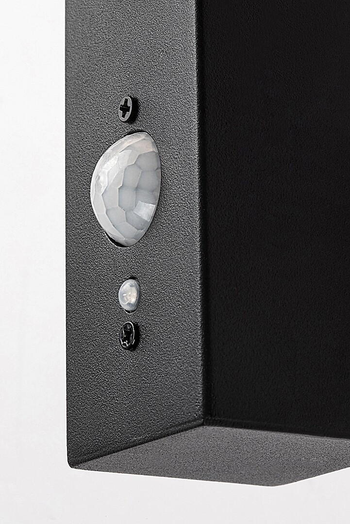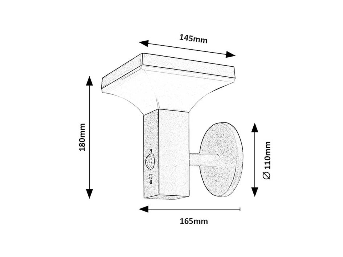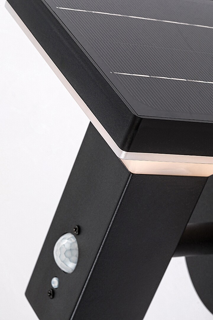 Mit ihren 4 Modi ist die moderne Solar-Außenwandleuchte Geleen mit Bewegungssensor eine ausgezeichnete Wahl für die Terrasse oder die Außenwand des Hauses. Dieses schwarze Modell besteht aus Edelstahl und wird durch einen weißen Kunststoffschirm ergänzt. Die Geleen erinnert in ihrer Form an einen Trichter und kann mithilfe einer kleinen, runden dekorativen Basis an der Wand befestigt werden. Die Leuchte verfügt über ein integriertes LED-Modul mit einer Leistung von 4 W, einer Lichtstärke von 400 Lumen mit Schirm und 600 Lumen ohne Schirm, sowie einer Lebensdauer von 10.000 Stunden. Die Leuchte strahlt warmweißes Licht aus, und ihre Farbtemperatur beträgt 3.000 K. Die Breite dieser Solarleuchte beträgt 145 mm, die Höhe 180 mm, der Abstand von der Wand 165 mm, der Installationsdurchmesser 110 mm. Der Bewegungssensor erkennt Bewegungen aus einer Entfernung von 6 bis 8 Metern bei einem Erfassungswinkel von 110°. Die Batterie hat eine Spannung von 3,7 V und eine Kapazität von 2.200 mAh. Der IP44-Schutz der Leuchte gewährleistet, dass sie vor dem Eindringen von festen Partikeln mit einem Durchmesser von 1 mm oder mehr, sowie vor Spritzwasser aus jeder Richtung geschützt ist. Ihr idealer Betriebstemperaturbereich liegt zwischen -20 °C und 40 °C.