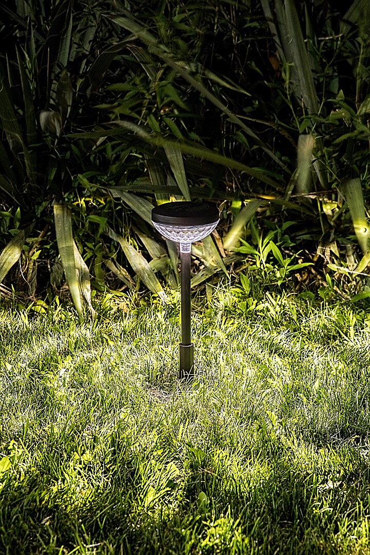 Die Rabalux Monor bodenmontierte Solarlampe ist ideal für alle, die eine praktische Lampe mit stilvollem Design suchen. Die Gartenleuchte besteht aus Kunststoff mit einem schwarzen Gehäuse und einem transparenten Lampenschirm. Der halbkugelförmige Lampenkopf ist an einem schlanken, zylindrischen Körper befestigt. Der Lampenschirm besticht durch eine elegante, facettierte Oberfläche, die ein Lichtspiel mit floraler Textur erzeugt. Diese LED-Außenleuchte ist eine großartige Wahl für moderne Gärten, in denen eine leicht versetzbare, praktische Lampe benötigt wird. Sie verfügt über eine integrierte Lichtquelle, die warmweißes Licht abstrahlt und auch RGB-Beleuchtung bietet. Der integrierte Akku lädt sich in 6–8 Stunden auf und bietet die gleiche Betriebszeit mit einer Ladung. Die bodenmontierte Lampe ist gegen das Eindringen von festen Partikeln mit einem Durchmesser von 1 mm oder mehr sowie gegen Spritzwasser aus allen Richtungen geschützt.