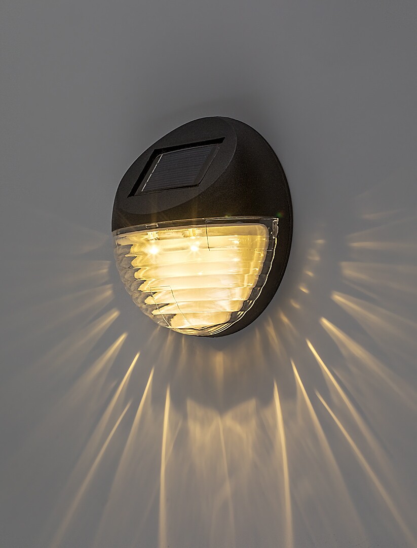 Die Rábalux Lermos solarbetriebene Außenwandleuchte ist mit ihrem modernen, halbkugelförmigen Design und dem schwarzen Kunststoffgehäuse eine elegante Ergänzung für jede Fassade. Der transparente, gerippte Kunststoffschirm sorgt für ein angenehmes, diffuses Licht, während die integrierte LED energieeffizient und zuverlässig arbeitet. Ein Dämmerungssensor schaltet die Leuchte bei Einbruch der Dunkelheit automatisch ein; bei Bedarf lässt sie sich auch über einen unauffälligen Schalter manuell ein- oder ausschalten. Geliefert wird sie im praktischen 2er-Set und lässt sich kabellos sowie unkompliziert montieren – ideal für die stimmungsvolle Beleuchtung von Eingangsbereichen, Terrassen, Balkonen oder Gartentreppen. Dank ihrer wetterfesten Ausführung ist sie bestens für den langfristigen Außeneinsatz geeignet, und ihr modernes Design fügt sich dezent in jede Umgebung ein.