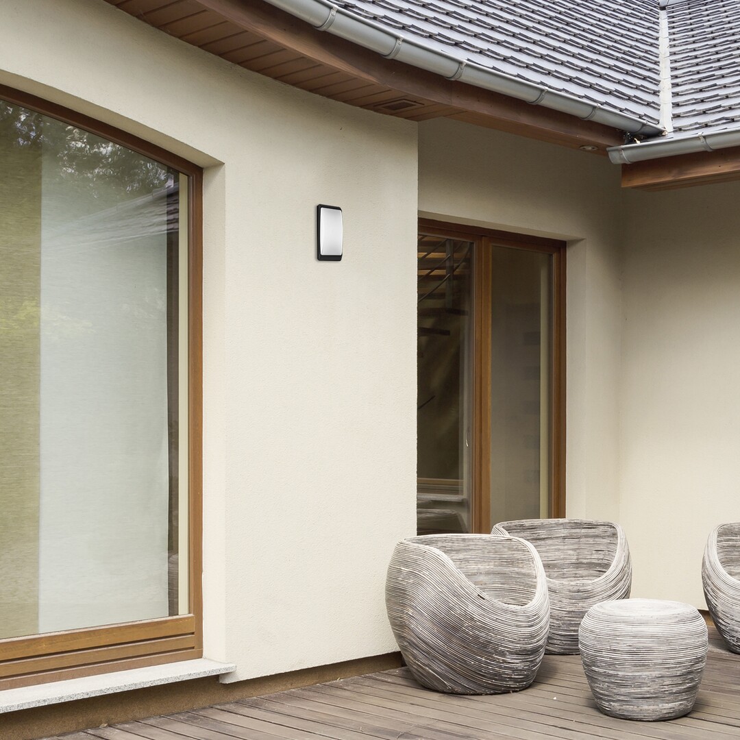 Die eckige Außenwandleuchte Opole, die mit gerundeten Ecken vollständig aus Kunststoff in Mattschwarz gefertigt wird, wird durch eine weiße Abdeckung ergänzt. Die Abdeckung wird nur durch einen schmalen schwarzen Rahmen umgeläuft, so gibt die Lampe das Licht möglichst großflächig ab. Dieses Modell kann auf der Terrasse oder irgendwo an der Außenwand des Hauses montiert werden, wo man Beleuchtung braucht um den Eingang sicher erreichen zu können. Wenn sie auf der Terrasse platziert wird, benutzen Sie sie mit einer Lichtquelle, die warmweißes Licht abstrahlt und mit deren Hilfe eine gemütliche, intime Atmosphäre für lange sommerabendliche Unterhaltungen geschafft werden kann. Die Opole, die den modernen Stil vertritt, kann mit einer einzigen Lichtquelle mit einer Leistungsaufnahme von bis zu 12 W verwendet werden. Typ der Fassung ist E27. Die Abmessungen der Außenleuchte sind wie folgt: Breite 130 mm, Höhe 320 mm, Abstand von der Wand 130 mm. Sie verfügt über die Schutzart IP65, d. h. sie ist vollständig abgedichtet und gegen festes Material und Schmutz sowie Niederdruckwasserstrahlen geschützt. Diese Leuchte wird ohne Lichtquelle geliefert.