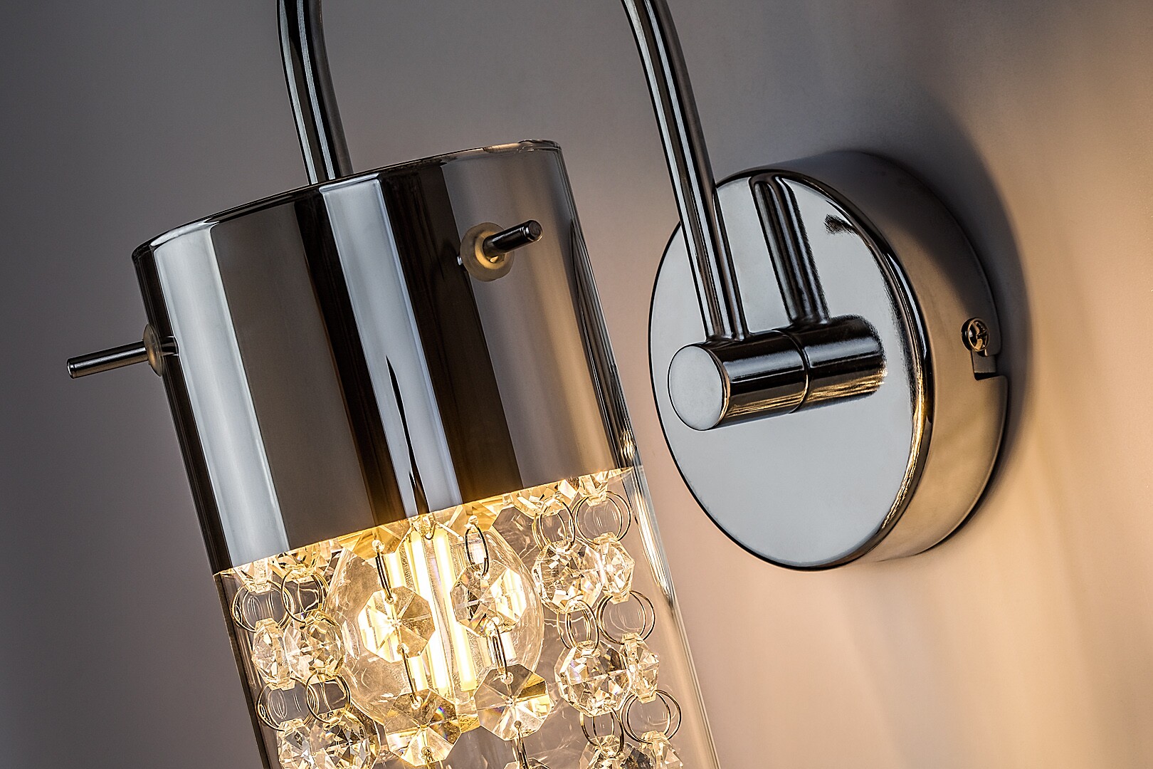 Die im klassischen Stil gefertigte Badezimmerwandleuchte Niagara wird eine elegante Ergänzung der Einrichtung von Ihrem Badezimmer sein. Sie kann in der Nähe des Waschbeckens oder der Wanne montiert werden, wo sie für eine stimmungsvolle Beleuchtung zur Routine vor dem Schlafengehen sorgt. Dieses Modell, das aus einem chromfarbenen Metallgehäuse und einer transparenten Glasabdeckung besteht, kann mit einer einzigen Lichtquelle mit einer Leistungsaufnahme von bis zu 40 W verwendet werden. Typ der Fassung ist E14. Die Niagara wird durch die Kristalldekorelemente speziell gemacht, die sich unter der Glasabdeckung verbergen und – getreu dem Namen der Lampe – an einen Wasserfall erinnern. Die Schutzart IP44 der Lampe stellt sicher, dass sie vor dem Eindringen von Gegenständen mit einem maximalen Durchmesser von 1 mm sowie vor Spritzwasser aus jeder Richtung geschützt ist. Die Abmessungen dieser Badezimmerwandleuchte sind wie folgt: Breite 115 mm, Höhe 265 mm, Durchmesser 90 mm, Abstand von der Wand 200 mm, Installationsdurchmesser 90 mm. Dieses Modell wird ohne Lichtquelle geliefert.