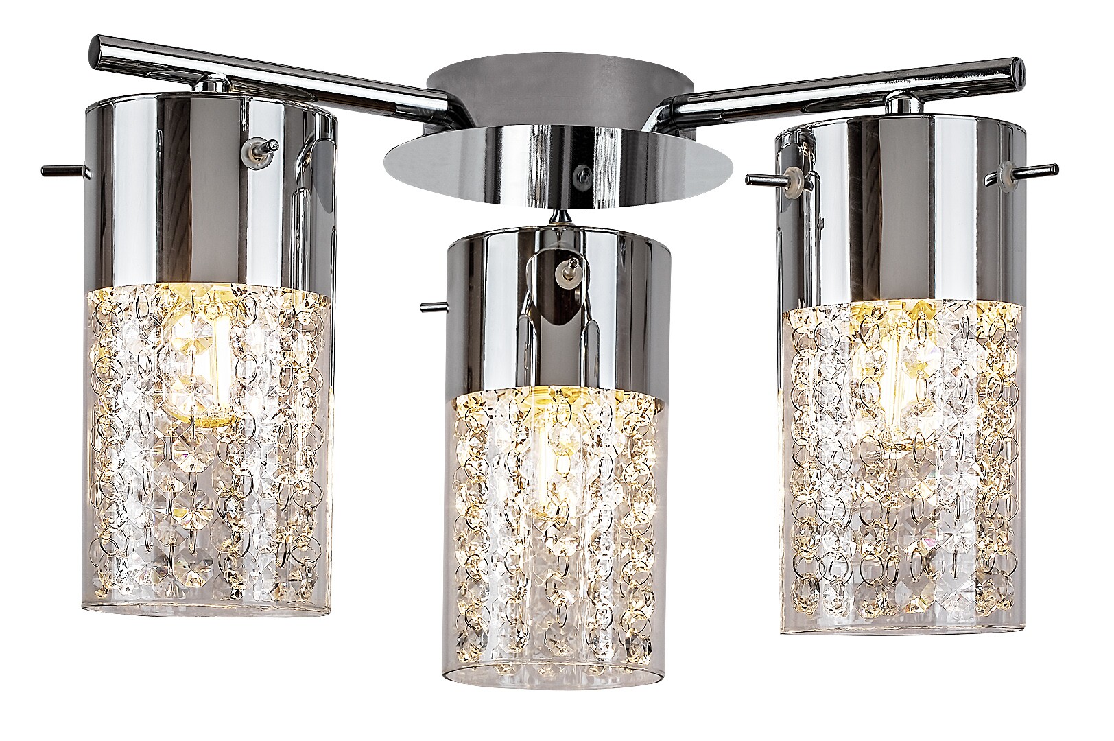 Die im klassischen Stil gefertigte 3-flammige Badezimmerdeckenleuchte Niagara wird ein bestimmendes Einrichtungsstück Ihres Badezimmers sein. Dieses elegante Modell sorgt für eine stimmungsvolle Beleuchtung zur Routine vor dem Schlafengehen. Die Deckenleuchte, die aus einem chromfarbenen Metallgehäuse und transparenten Glasabdeckungen besteht, kann mit drei Lichtquellen mit je einer Leistungsaufnahme von bis zu 40 W verwendet werden. Typ der Fassungen ist E14. Die drei Lampenköpfe hängen von den chromfarbenen Stangen ab, die sich aus dem runden Baldachin hinausragen. Die Niagara wird durch die Kristalldekorelemente speziell gemacht, die sich unter den Glasabdeckungen verbergen und – getreu dem Namen der Lampe – an einen Wasserfall erinnern. Die Schutzart IP44 der Lampe stellt sicher, dass sie vor dem Eindringen von Gegenständen mit einem maximalen Durchmesser von 1 mm sowie vor Spritzwasser aus jeder Richtung geschützt ist. Die Abmessungen dieser Badezimmerdeckenleuchte sind wie folgt: Breite 335 mm, Abstand von der Decke 215 mm, Installationsdurchmesser 100 mm. Dieses Modell wird ohne Lichtquellen geliefert.