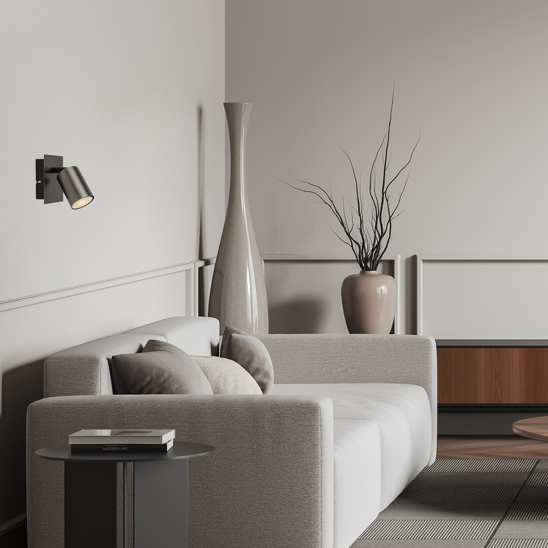 Die Wandleuchte Gerhard von Rábalux wird all jenen empfohlen, die Funktionalität und minimalistischen Stil bevorzugen. Dieses Modell mit einem zylindrischen Lampenkopf besteht vollständig aus Metall, was der Lampe durch ihren grau-metallischen Glanz ein elegantes Aussehen verleiht. Die Wandlampe kann mit einer rechteckigen, aufrecht stehenden dekorativen Basis an der Wand befestigt werden. Der praktische Lampenkopf ist drehbar, sodass das Licht nach Bedarf im Raum ausgerichtet werden kann. Die Spotleuchte kann mit einem Leuchtmittel mit einer Leistung von bis zu 15 W betrieben werden. Der Sockeltyp ist GU10. Je nach Geschmack kann ein Leuchtmittel gewählt werden, das warmes oder neutralweißes Licht abgibt. Die kleine Wandlampe ist die ideale Wahl für das Wohnzimmer, Schlafzimmer oder Arbeitszimmer. Dieses Modell wird ohne Leuchtmittel geliefert.