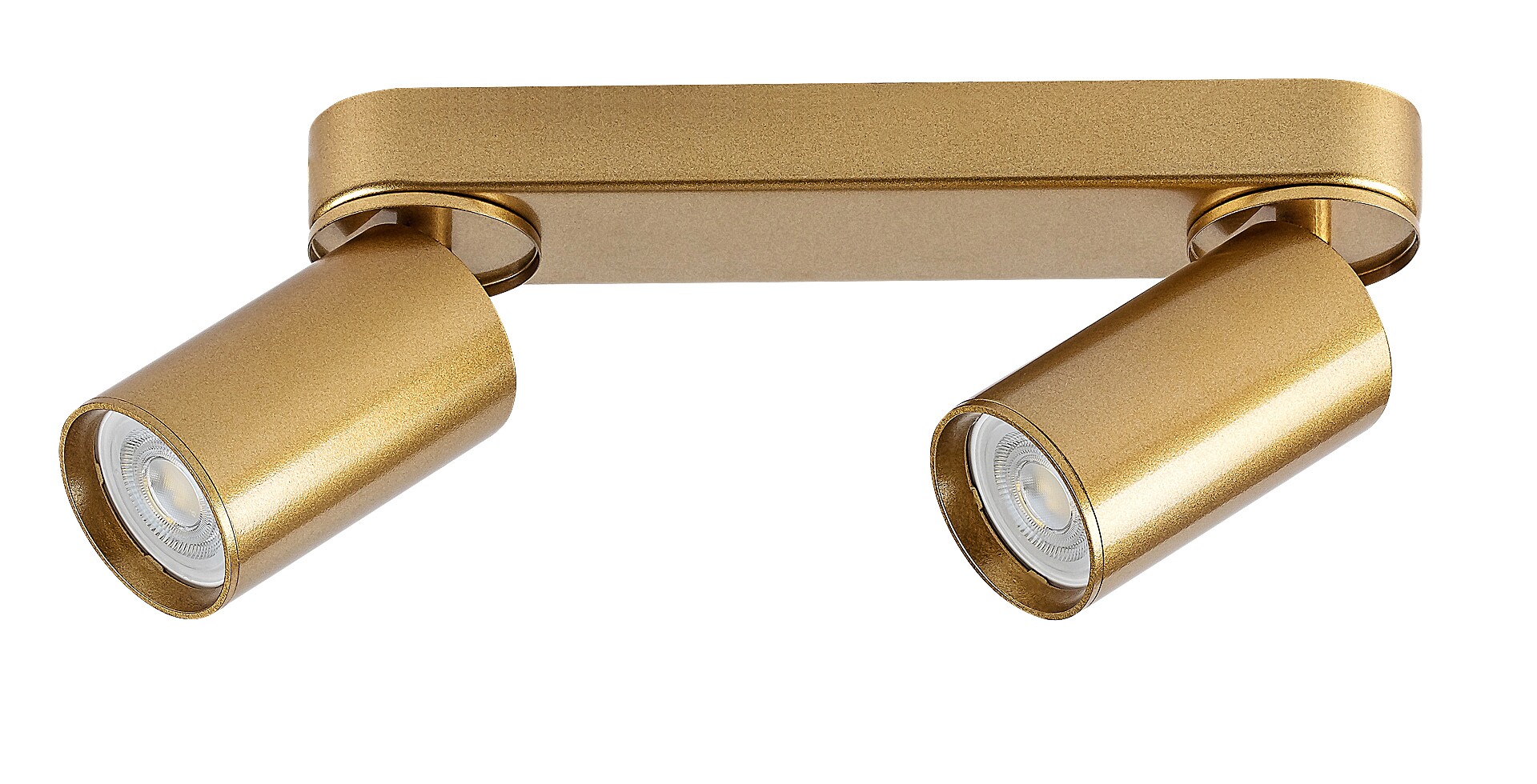 Die 2-flammige Deckenleuchte Mirina von Rábalux wird all jenen empfohlen, die ein Modell suchen, das minimalistisches Design mit Eleganz vereint. Die Deckenleuchte besteht aus Metall in strahlendem Gold, mit zylindrischen Lampenköpfen und Aluminium-Schirmen. Sie kann mit einer länglichen, runden dekorativen Basis an der Decke befestigt werden. Die Lampenköpfe sind an beiden Enden der dekorativen Basis positioniert und können, da sie flexibel sind, das Licht nach Bedarf ausrichten. Dieses Modell kann mit zwei Leuchtmitteln mit einer Leistung von jeweils bis zu 5 W betrieben werden. Der Sockeltyp ist GU10. Die Spotleuchte ist die perfekte Wahl für das Wohnzimmer, Schlafzimmer oder Arbeitszimmer. Je nach Geschmack und dem Raum, in dem die Lampe installiert werden soll, kann ein Leuchtmittel gewählt werden, das warmes oder neutralweißes Licht abgibt. Die Deckenleuchte wird ohne Leuchtmittel geliefert.