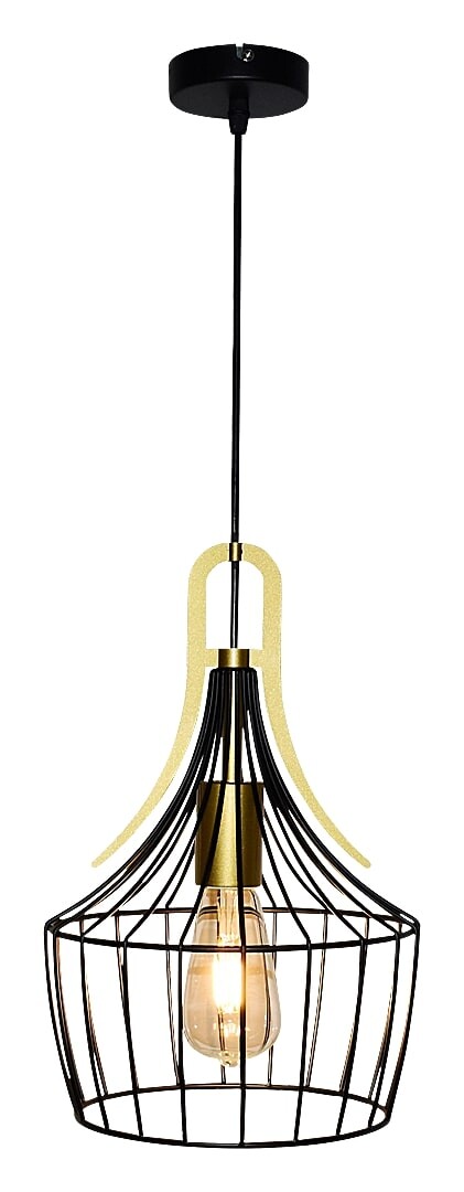 Die 1-flammige Pendelleuchte Parov, die im Industriestil gefertigt wurde, wird ein puritanisches und sondergleiches Einrichtungsstück Ihres modernen Wohnzimmers, Esszimmers oder der Küche sein. Die mattschwarze Leuchte, die vollständig aus Metall gefertigt wurde, wird durch eine Gitterabdeckung und eine goldfarbene Dekoration ergänzt, die die Linie des oberen Teiles der Abdeckung folgt. Die Parov kann mittels eines kleinen, runden Baldachins an der Decke befestigt werden. Die Pendelleuchte kann mit einer einzigen Lichtquelle mit einer Leistungsaufnahme von bis zu 40 W verwendet werden, Typ der Fassung ist E27. Licht strömt ungehindert durch die käfigartige, symbolische Abdeckung aus der Lampe. Wenn Sie einen reinen, modernen Effekt erreichen möchten, wählen Sie eine neutralweiße Lichtquelle für diese Lampe. Die Abmessungen der Hängeleuchte Parov sind wie folgt: Durchmesser 240 mm, Höhe 365 mm, Abstand von der Decke 1200 mm. Dieses Modell wird ohne Lichtquelle geliefert.