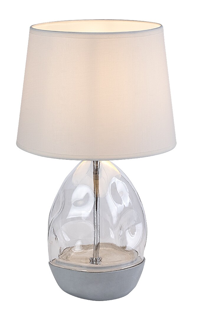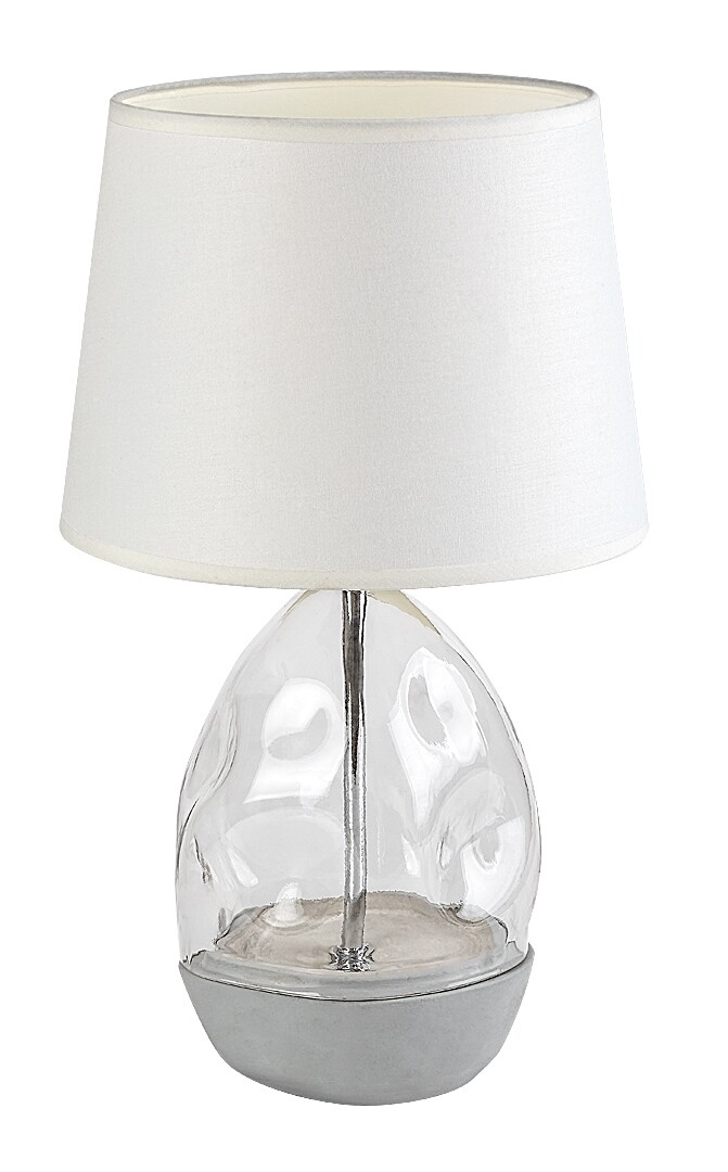 Die Tischleuchte Apolonia von Rábalux wird all jenen empfohlen, die nach einer besonderen, auffälligen Ergänzungslampe suchen. Diese Designlampe hat eine Halterung aus transparentem Glas und weißer Keramik sowie einen weißen Textil-Lampenschirm. Der Lampenschirm vergrößert sich leicht nach unten und filtert die Lichtfarbe, ohne das vom Leuchtmittel abgegebene Licht übermäßig zu dämpfen. Die Tischlampe ist die perfekte Wahl für das Wohnzimmer oder Schlafzimmer, wo sie auch als dekoratives Element verwendet werden kann. Je nach Geschmack kann ein Leuchtmittel gewählt werden, das warmes oder neutralweißes Licht abgibt. Sie wird mit einem Kabelschalter bedient und kann mit einer einzelnen Lichtquelle mit einer Leistung von bis zu 40 W betrieben werden. Der Sockeltyp ist E27. Die Nachtlampe wird ohne Leuchtmittel geliefert.