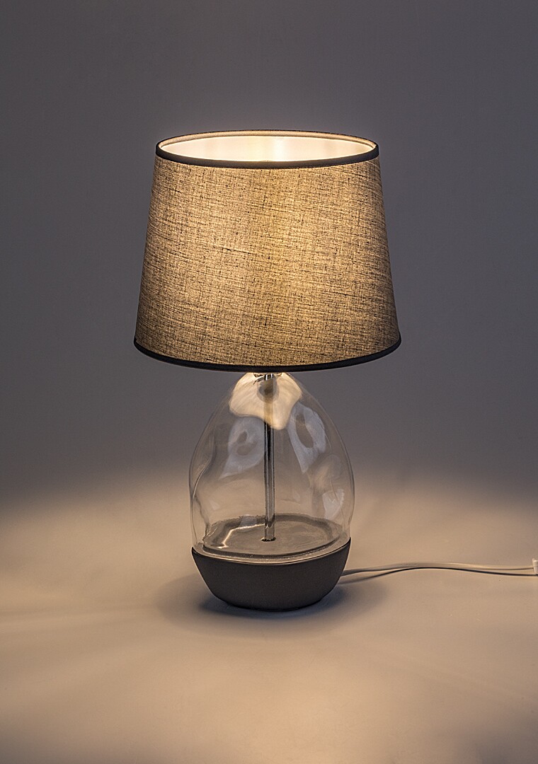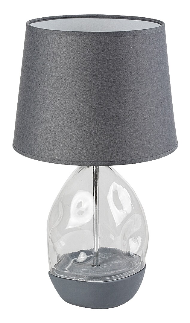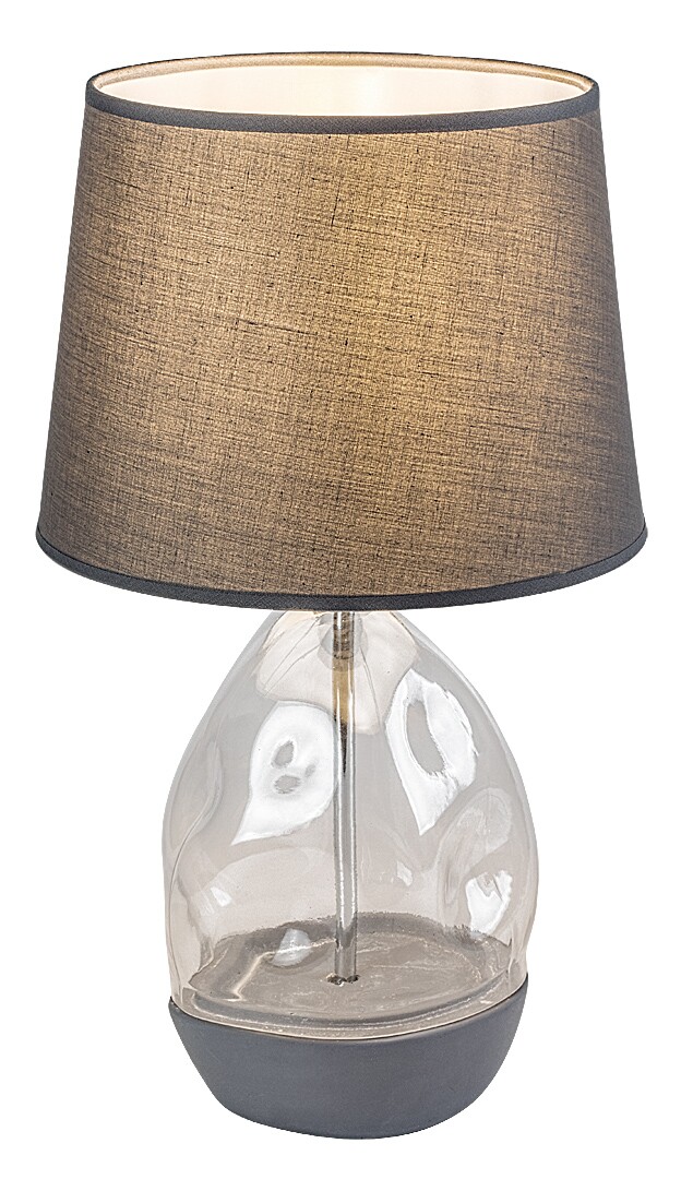 Die Tischleuchte Apolonia von Rábalux wird all jenen empfohlen, die nach einer besonderen, auffälligen Ergänzungslampe suchen. Die Halterung dieser Designlampe besteht aus transparentem Glas mit unregelmäßiger Oberfläche und grauer Keramik, während der Lampenschirm aus grauem Textil gefertigt ist. Der Schirm vergrößert sich leicht nach unten, und seine dunkle Farbe filtert das Licht der Glühbirne. Die Tischlampe ist die perfekte Wahl für das Wohnzimmer oder den Nachttisch im Schlafzimmer, wo sie auch als dekoratives Element verwendet werden kann. Je nach Geschmack kann ein Leuchtmittel gewählt werden, das warmes oder neutralweißes Licht abgibt. Sie wird mit einem Kabelschalter bedient und kann mit einer einzelnen Lichtquelle mit einer Leistung von bis zu 40 W betrieben werden. Der Sockeltyp ist E27. Die Nachtlampe wird ohne Leuchtmittel geliefert.